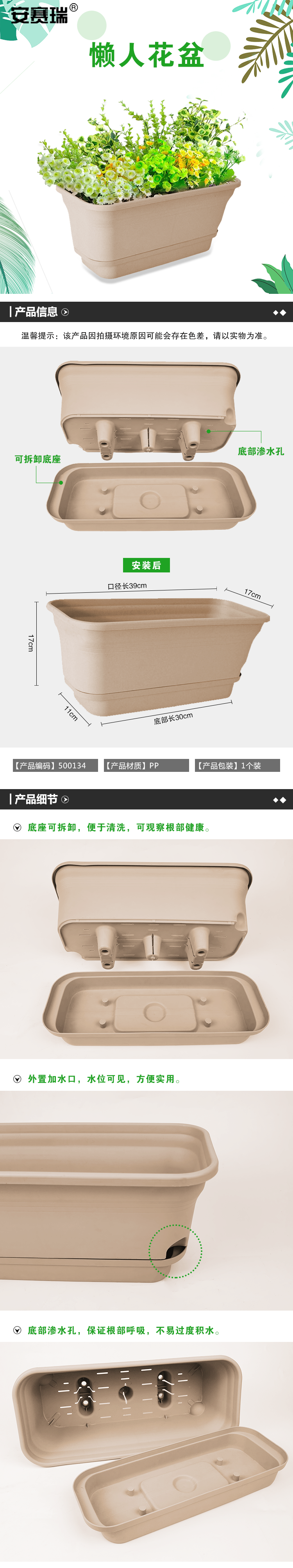 安赛瑞 种植花盆 双层自吸水种菜盆分离式花盆园艺种植箱 39×16.5cm 500134
