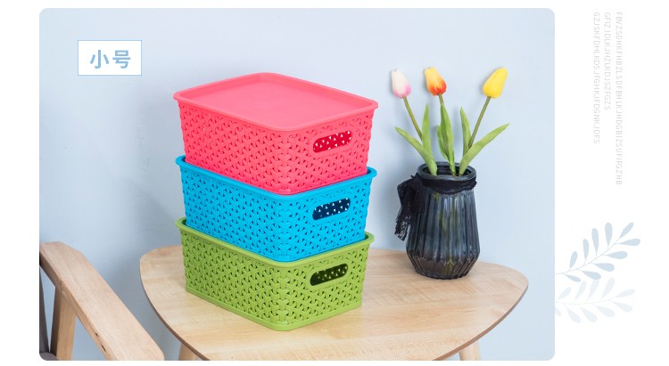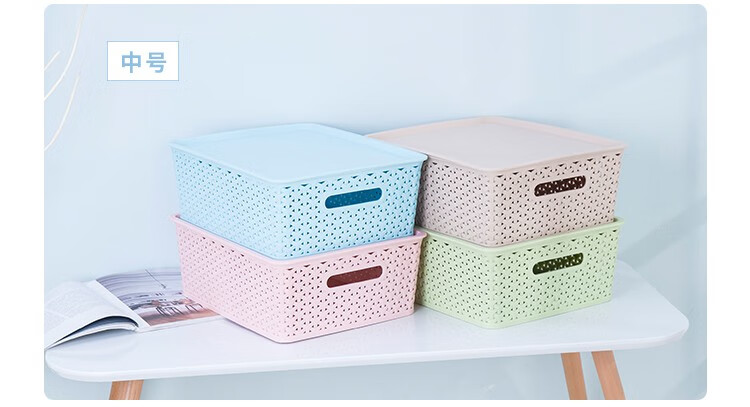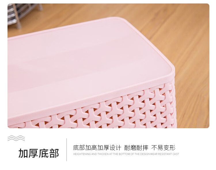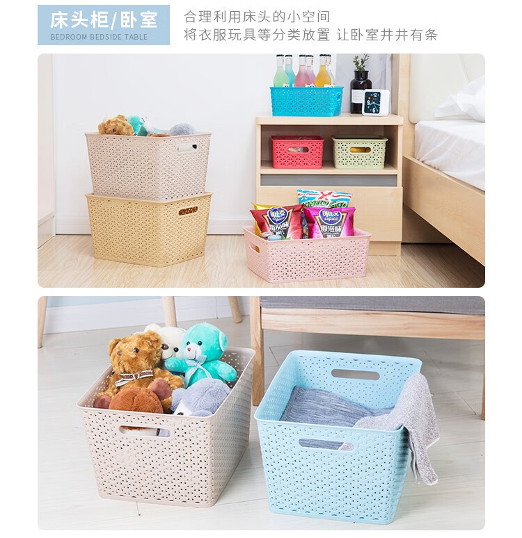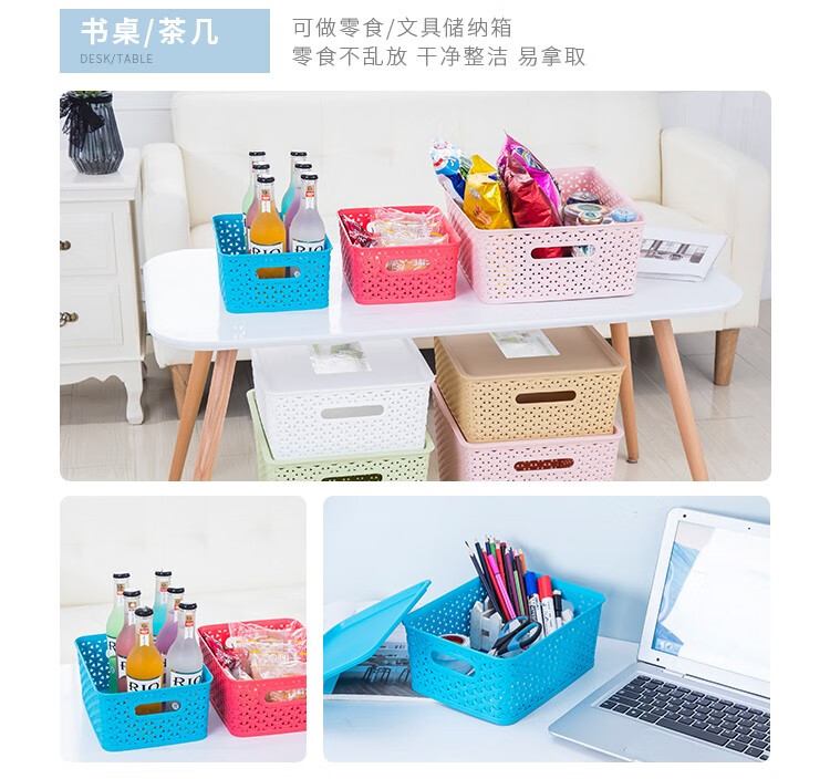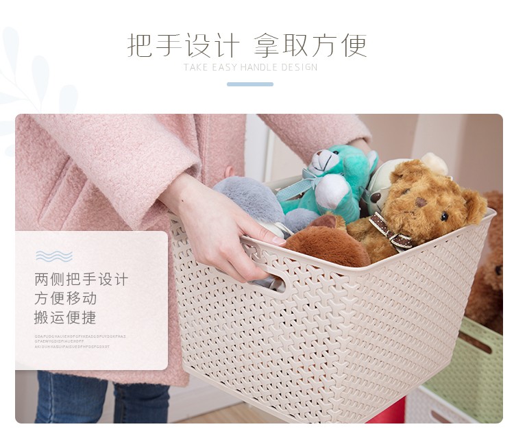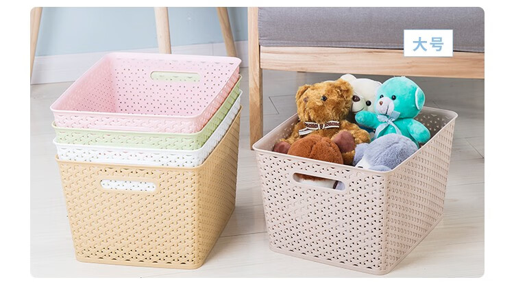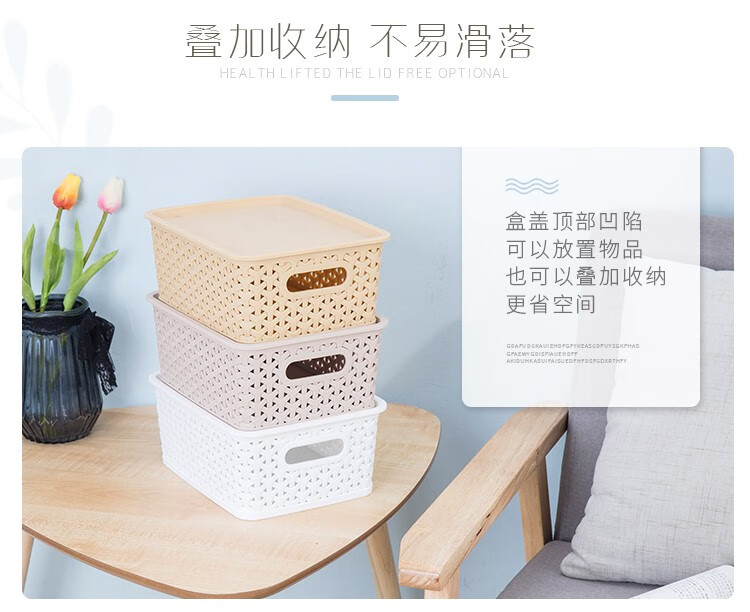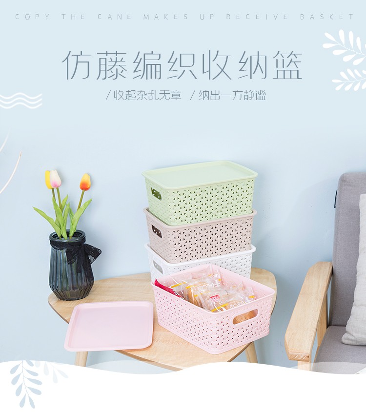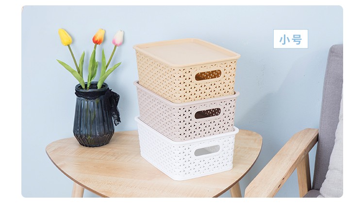 庄太太【米色大号无盖】仿藤编镂空收纳篮带盖收纳筐幼儿园玩具筐桌面整理盒