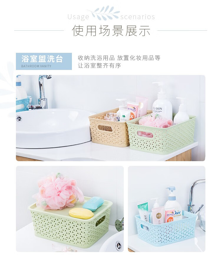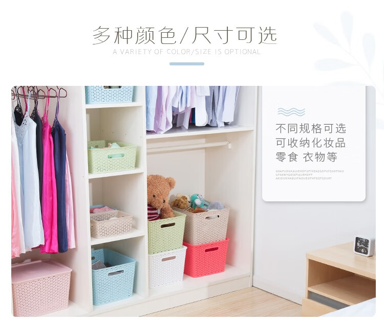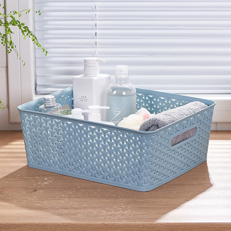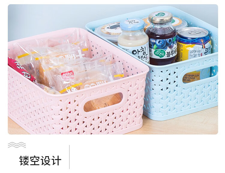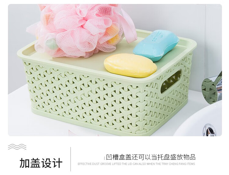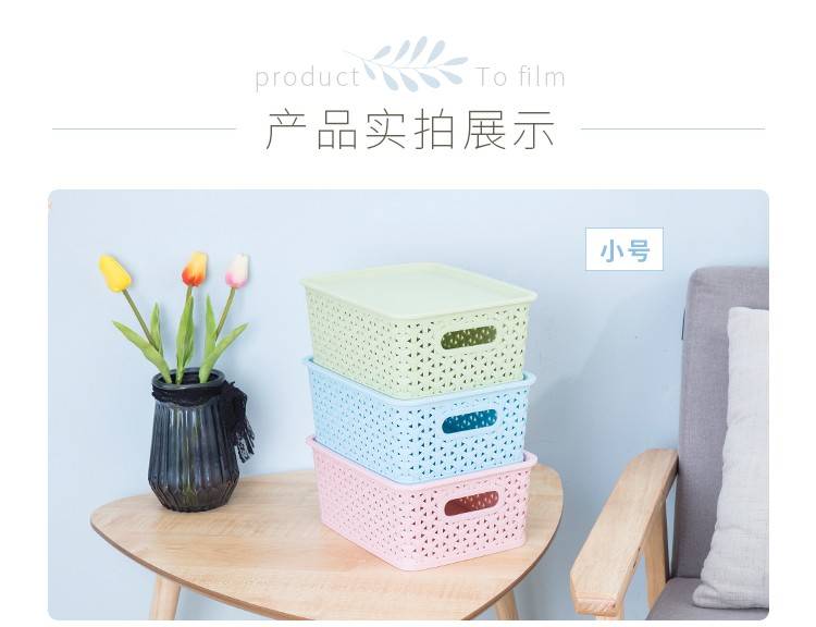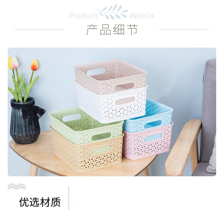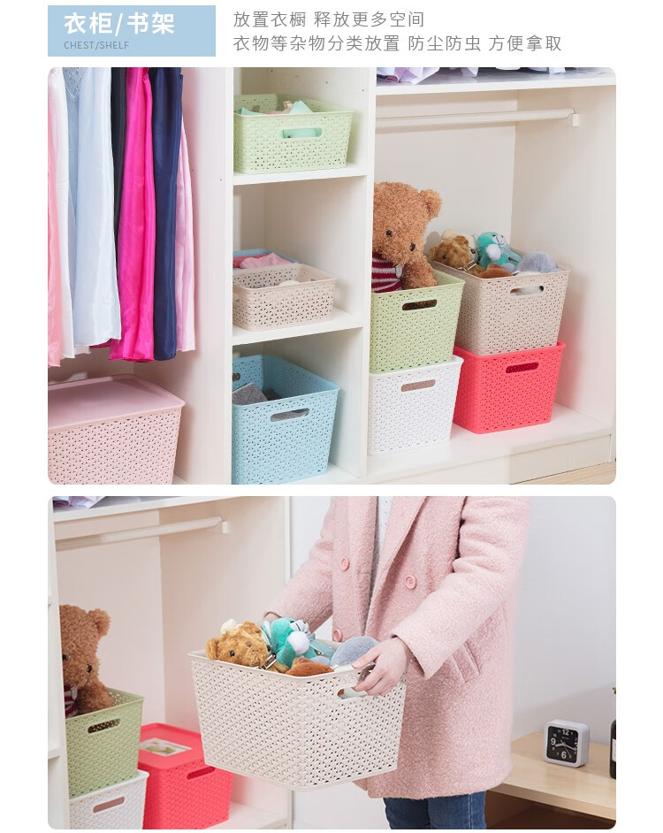 庄太太【米色大号无盖】仿藤编镂空收纳篮带盖收纳筐幼儿园玩具筐桌面整理盒