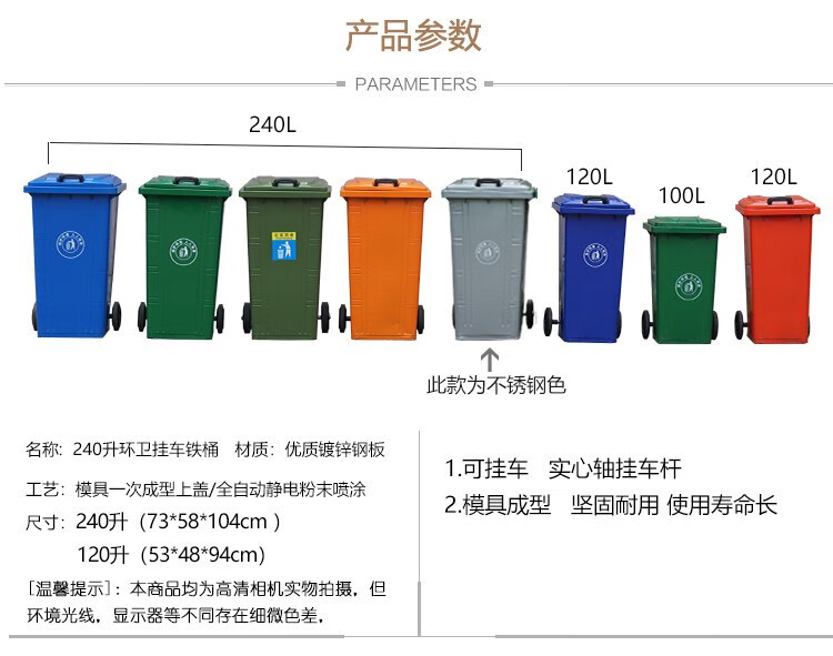 中环力安【240升铁桶颜色备注】铁桶环卫挂车铁皮垃圾桶大号带轮户外方形铁质垃圾箱