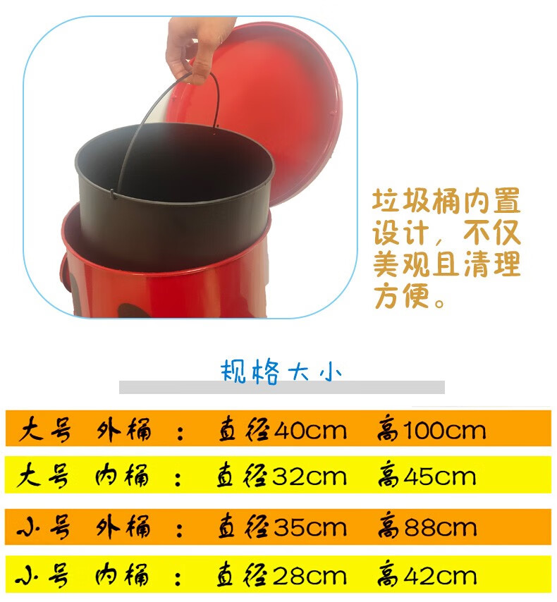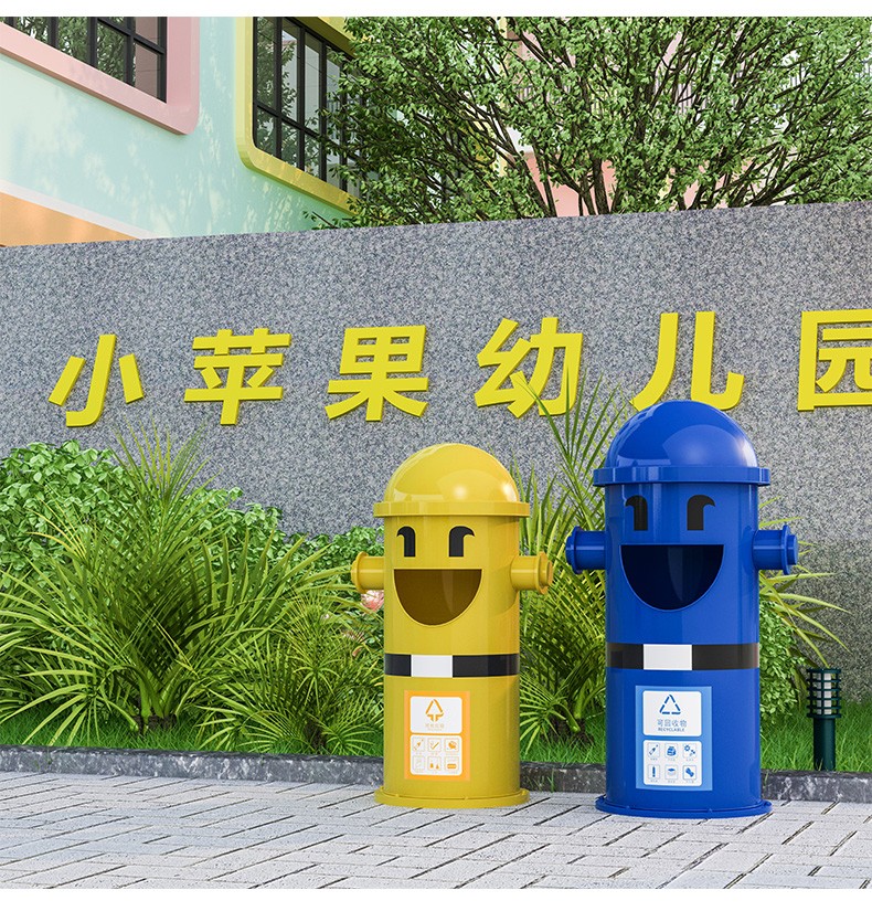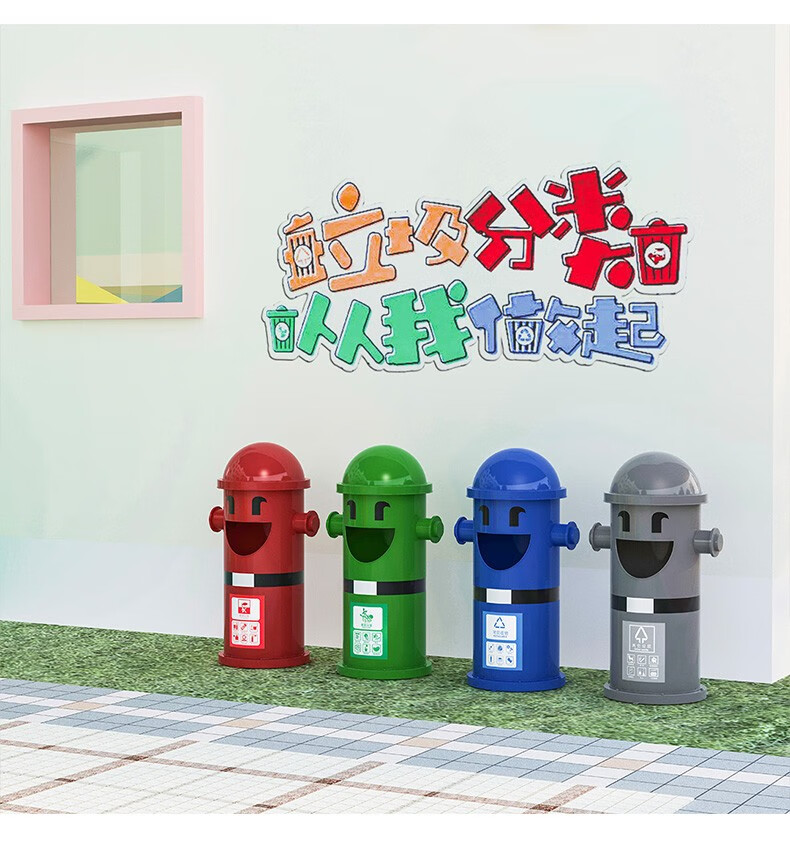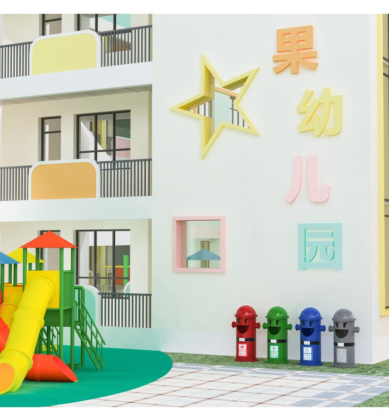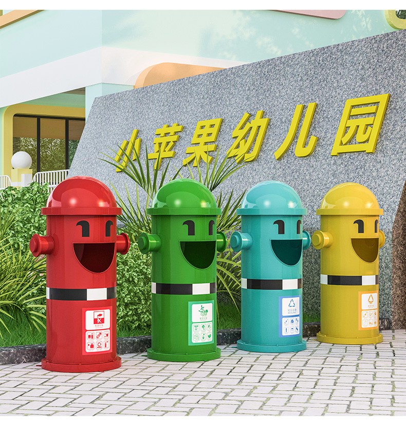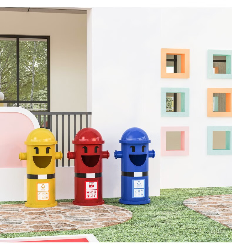 庄太太【红桶黄帽100cm】垃圾桶幼儿园卡通分类垃圾桶消防主题公园户外垃圾箱