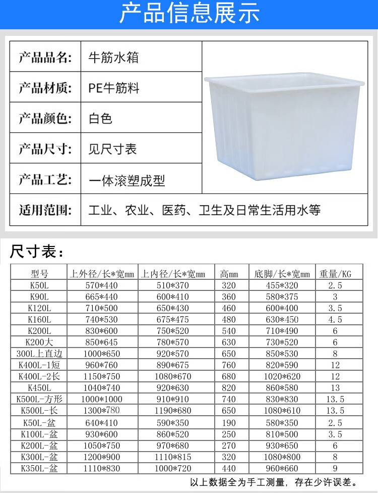 庄太太【100L盆】塑料水箱加大长方形带排水大号养鱼水产养殖储水桶