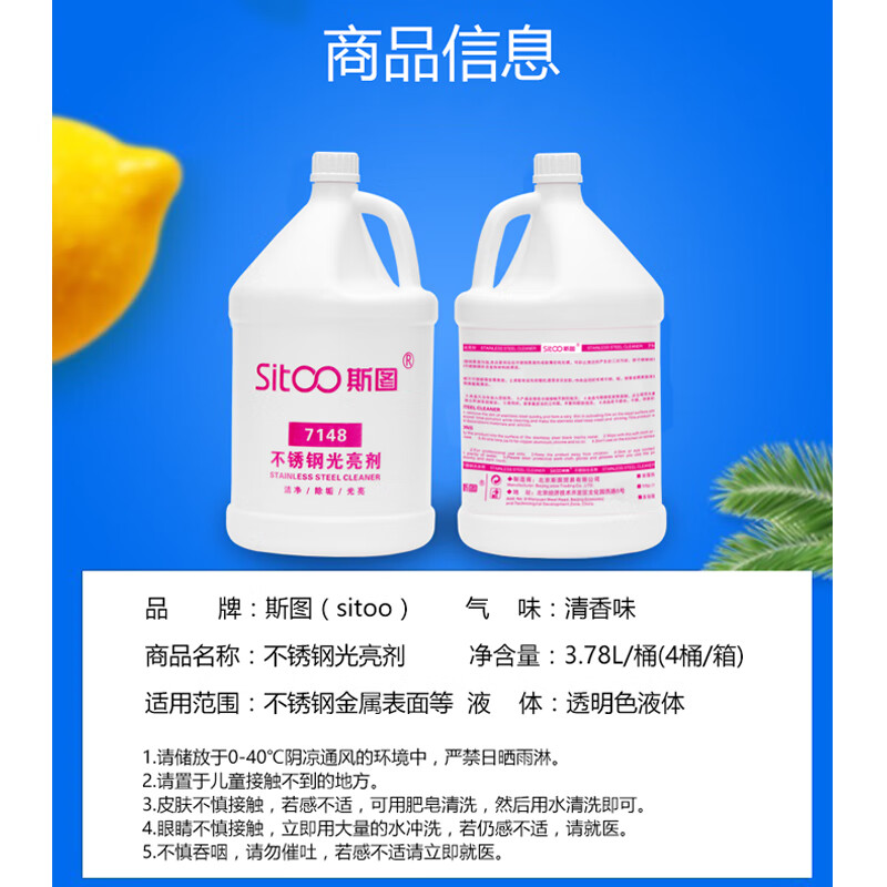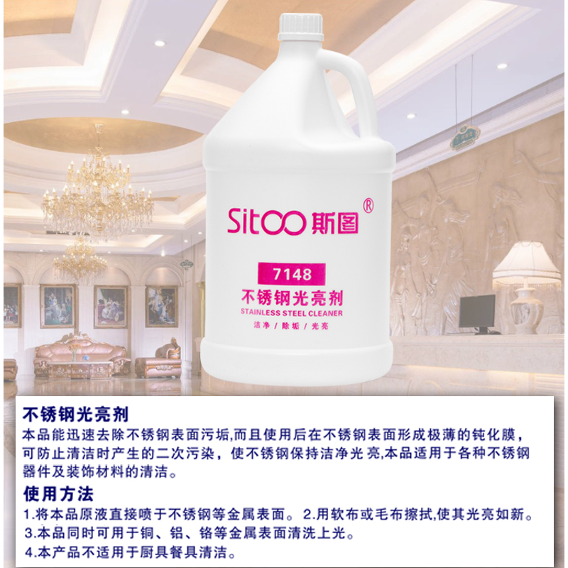 斯图清洁剂去污剂电梯保养油7148适合公司单位酒店宾馆企业3.78升不锈钢光亮剂(1桶装)