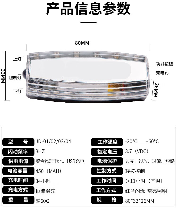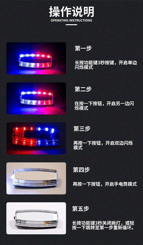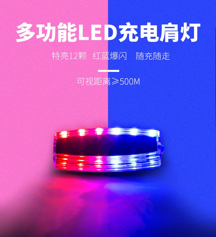 中环力安【黑底无字】肩灯LED充电红蓝爆闪光户外巡逻夜间跑步照明信号肩闪灯保安肩灯