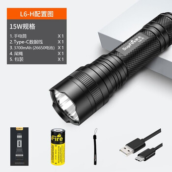 神火(supfire)强光手电筒USB充电式 超亮远射LED超长续航防水家庭骑行应急灯定制L6-H