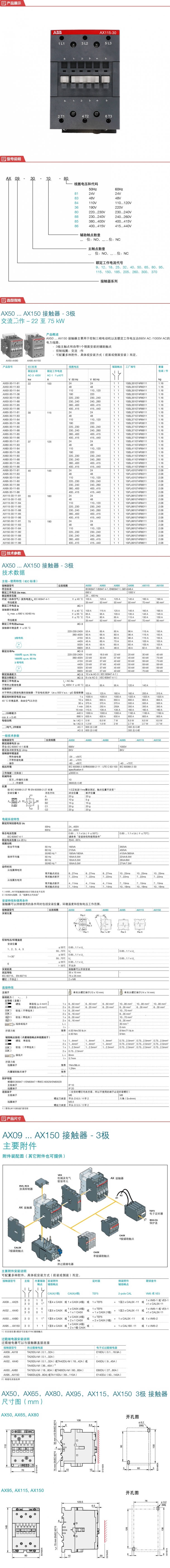 ABB 通用型接触器 AX115-30-11-80*220-230V50Hz