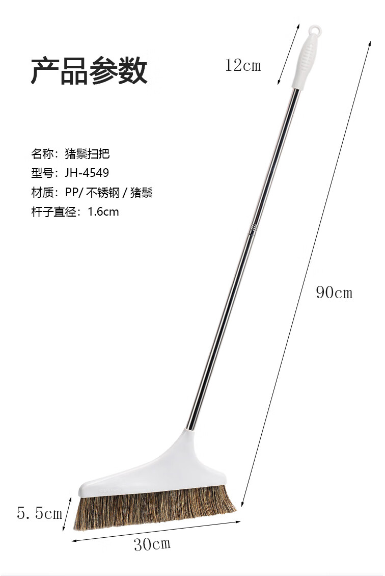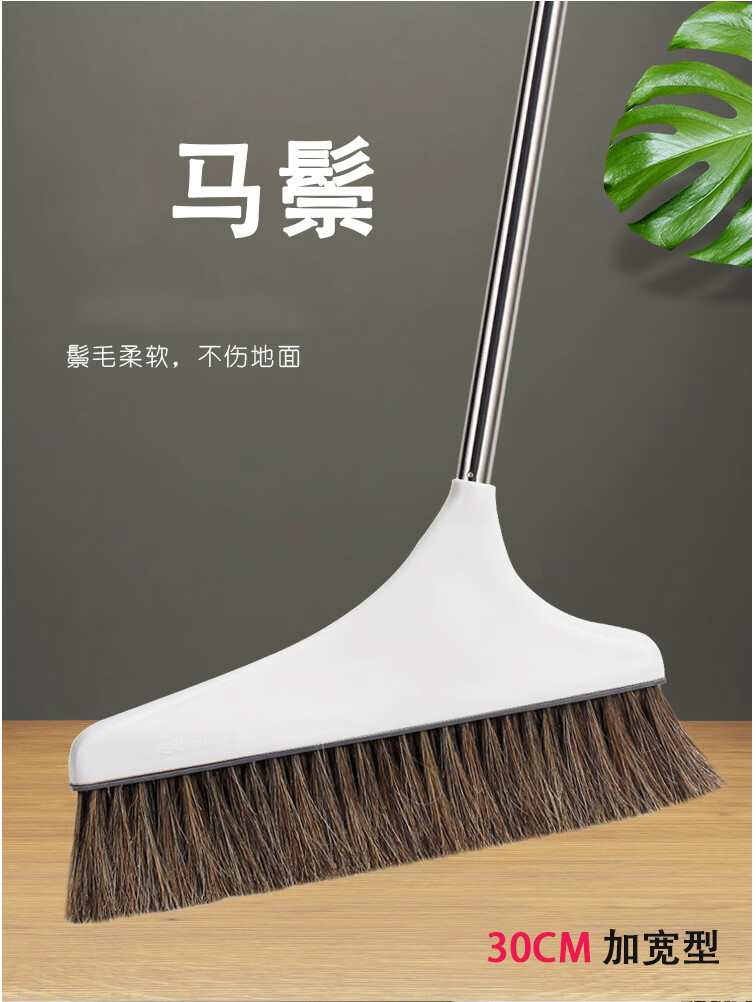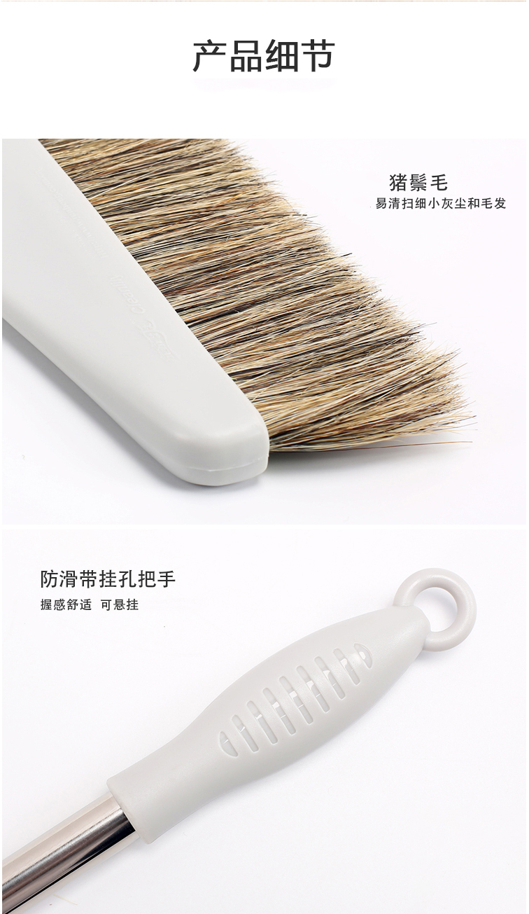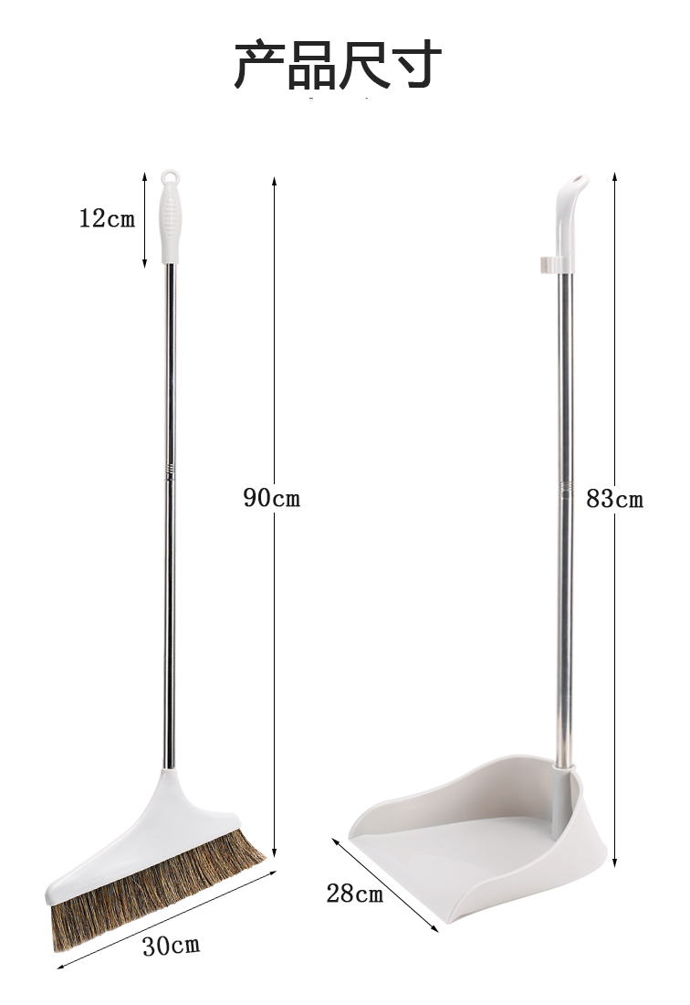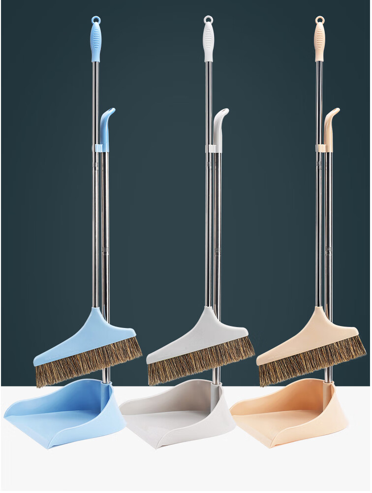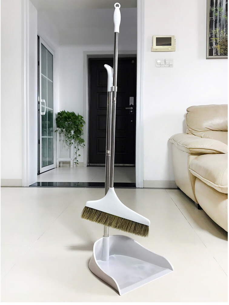 Homeglen 防风纯猪鬃毛扫把簸箕套装垃圾铲笤帚不易粘头发 米色套装