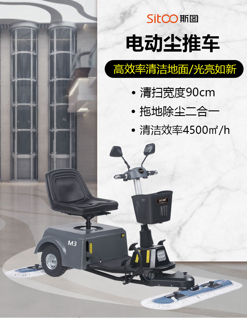 斯图驾驶式尘推车高铁酒店商场食堂物业电动拖地车 清洁保洁车扫地车 M3驾驶式尘推车(高性能版)