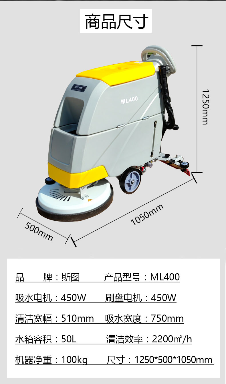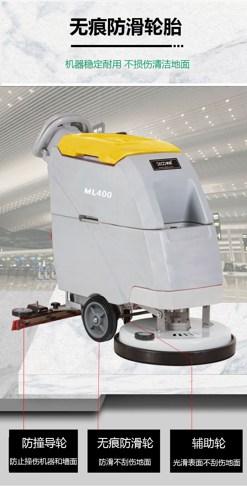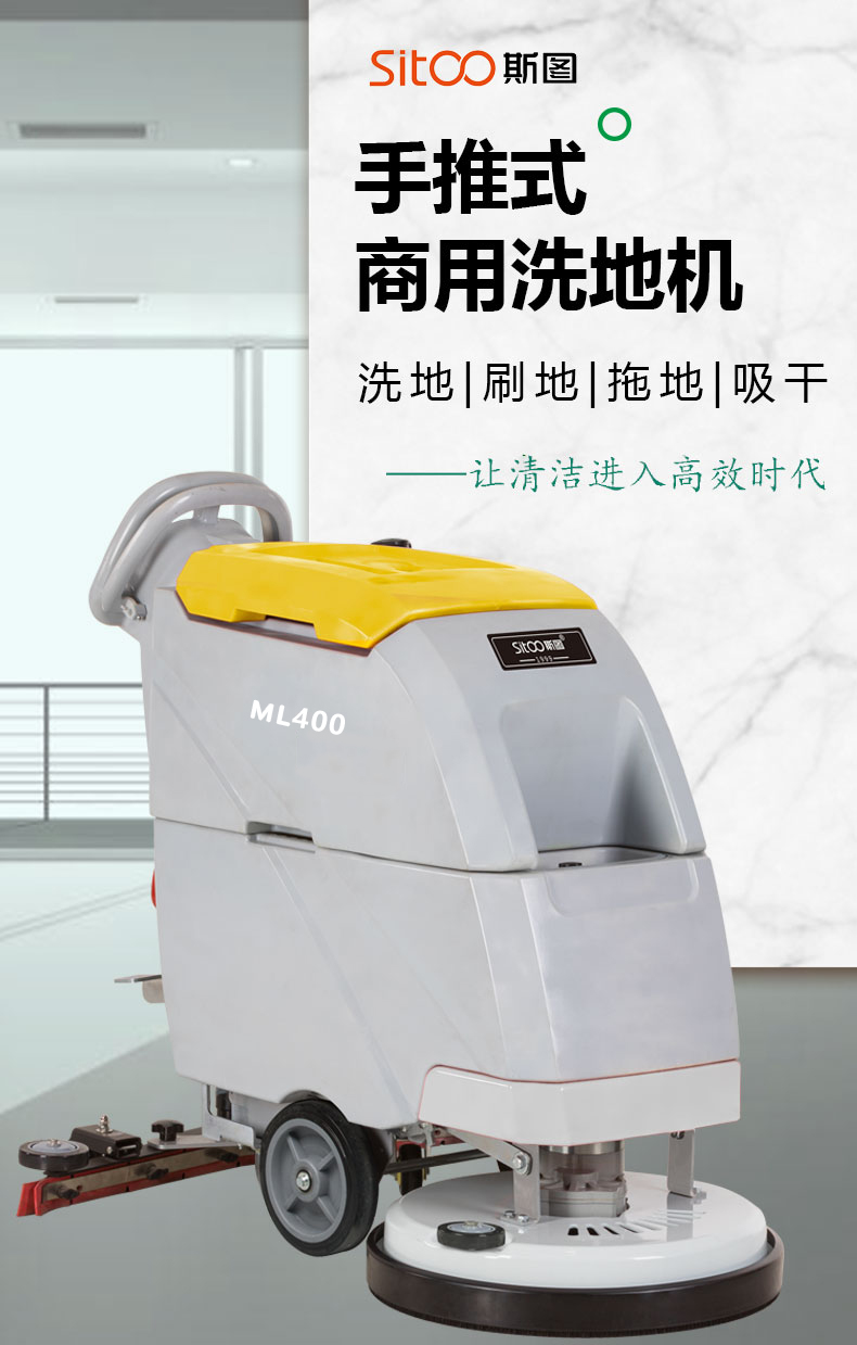 斯图电瓶式洗地机吸干机刷地机一体机多功能手推式充电商用酒店宾馆扫地车 ML400电瓶式手推刷地车(高性能版)