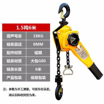 艾科堡 手扳葫芦1.5吨6米起重葫芦起重倒链手摇吊机手摇葫芦紧线器拉紧器手动牵引 AKB-SBHL-18