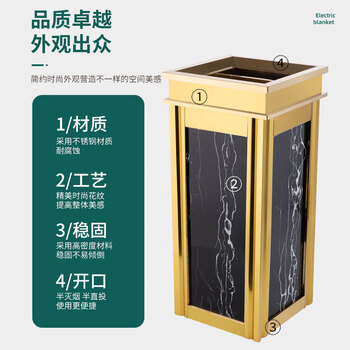 亿丽佳不锈钢烟灰缸酒店大堂垃圾桶立式宾馆带内桶商场电梯口垃圾桶果皮箱灭烟桶(金色仿大理石花纹A款)