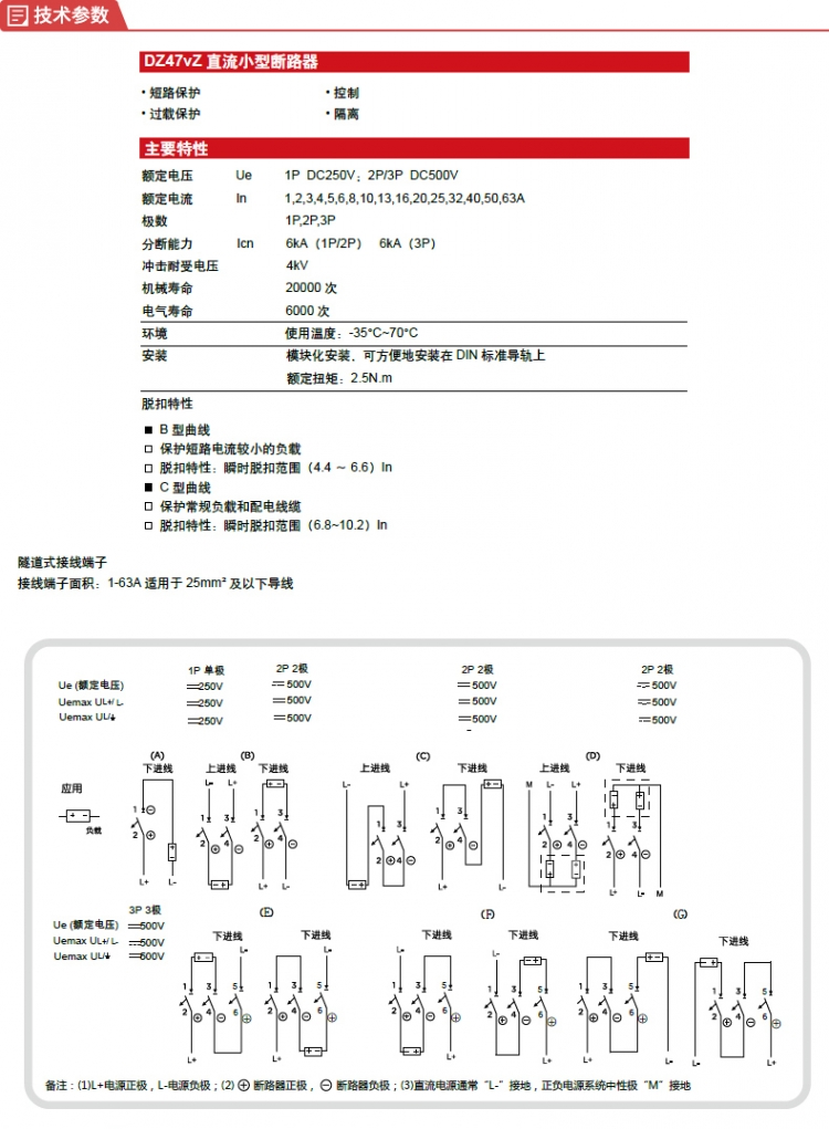 德力西电气 登峰系列DZ47vZ直流小型断路器DZ47vZ 2P 6kA C型10A DC500V