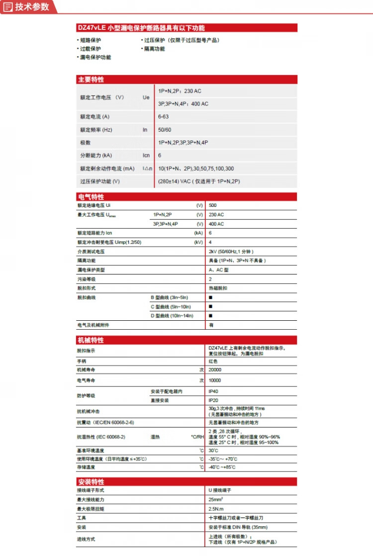 德力西电气 登峰系列小型漏电保护断路器DZ47vLE上进线 3P+N C型32A 30mA AC型
