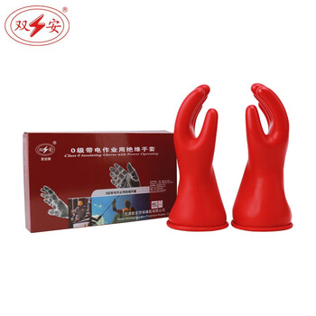 双安 5KV乳胶绝缘手套 0级带电作业耐压1000V防护手套 电气设备电工电力高压防触电劳保手套 定做 10#