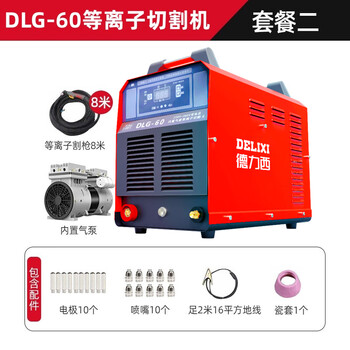 德力西等离子切割机内置气泵DLG60工业级220v380v双电压DLG-60双电压【内置气泵+8米割枪+配件】