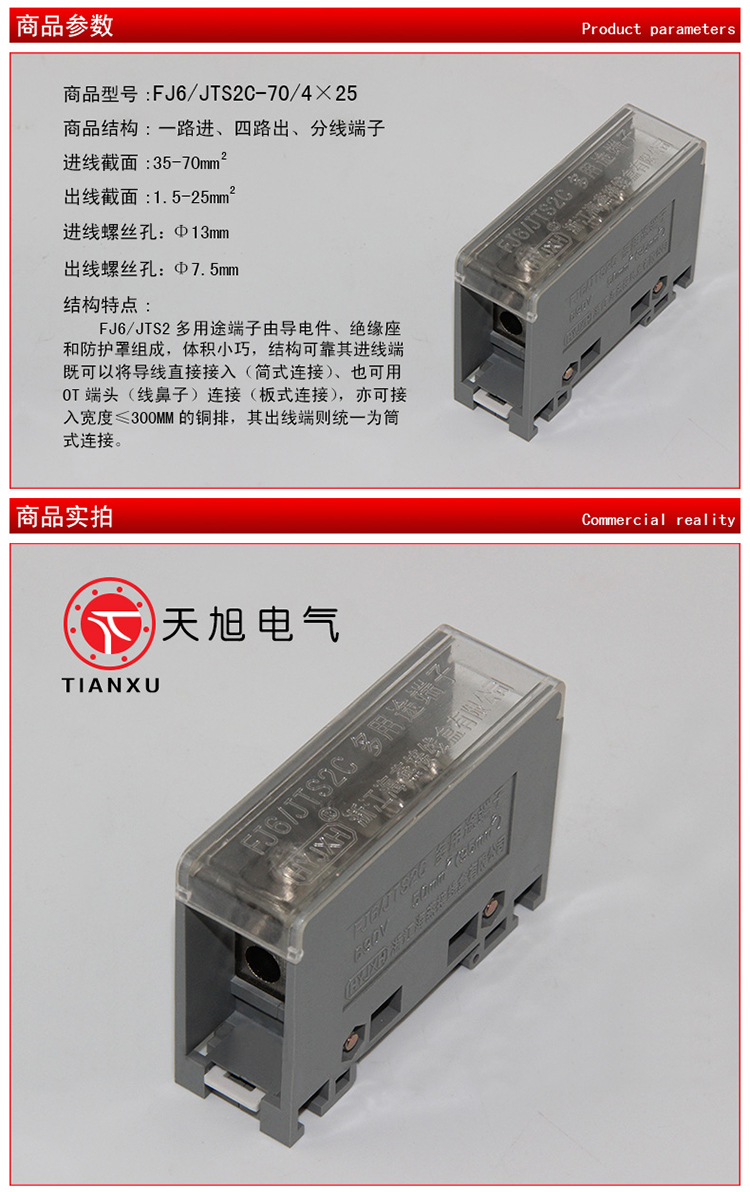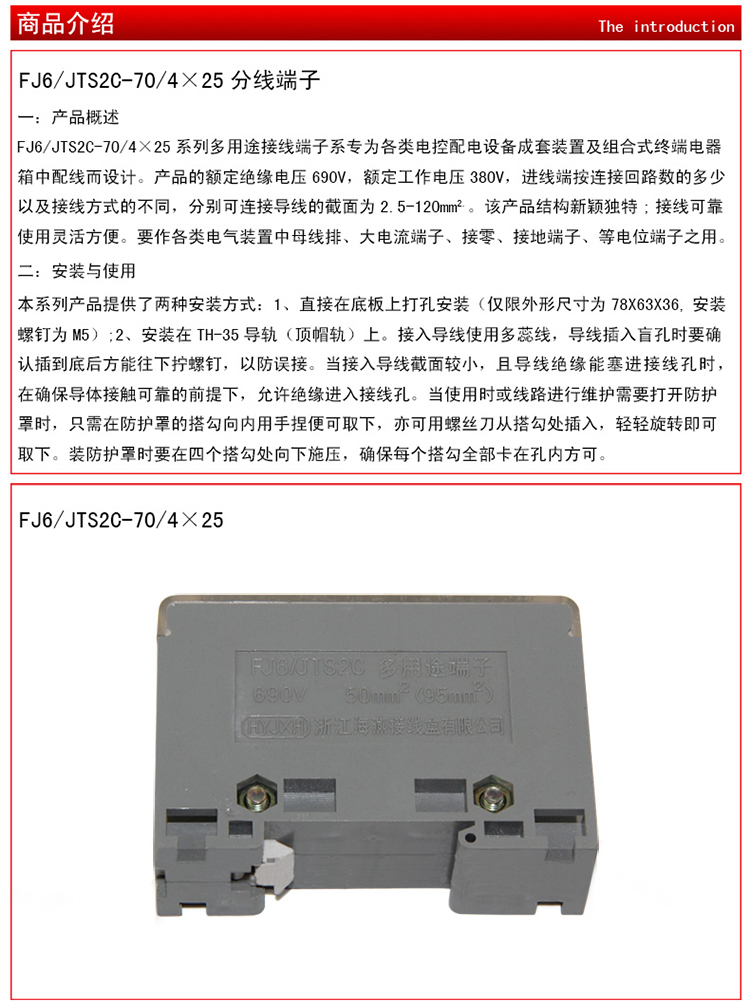 海燕FJ6/JTS2C-70/4×25 一进四出分线端子 1进4出接线端子 1个