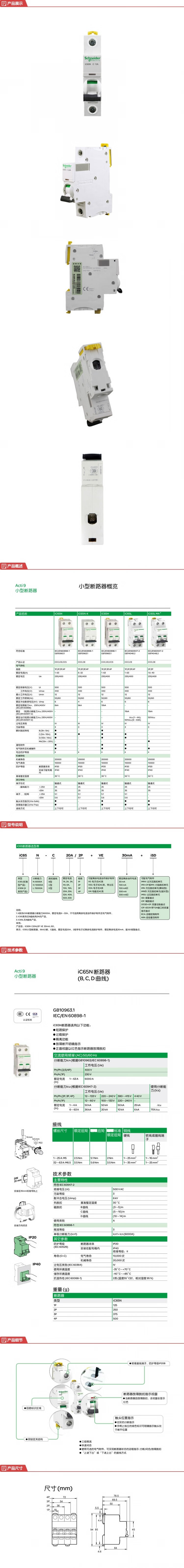 施耐德空气开关A9系列IC65N小型断路器2P双进双出 D型6A 空开总闸开关A9F19206