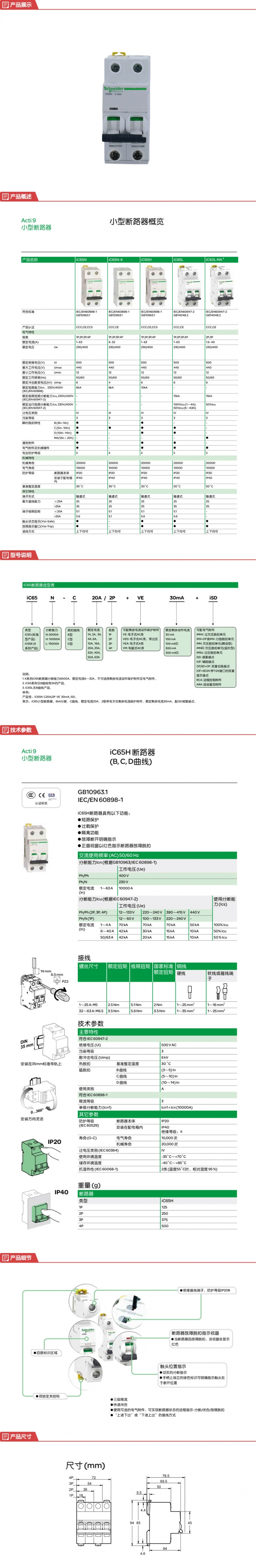 施耐德电气 小型断路器 空气开关 A9系列 iC65H-C16A 2P 10kA 单位:支 货号A9F28216