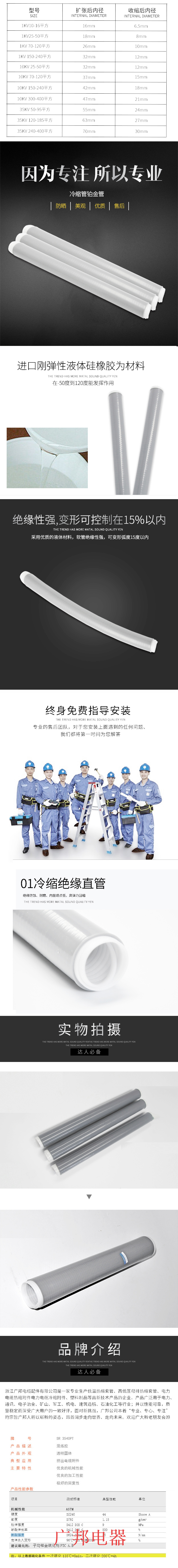 广邦电缆附件 冷缩管10KV 冷缩套管 高压加长管 铂金管 护套直管 鱼竿用 300-400平方 1根