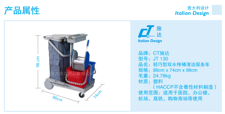 CT施达 TM-JT 130 多功能清洁服务车 酒店保洁收集手推车 排拖榨水车 物料储存 垃圾收集