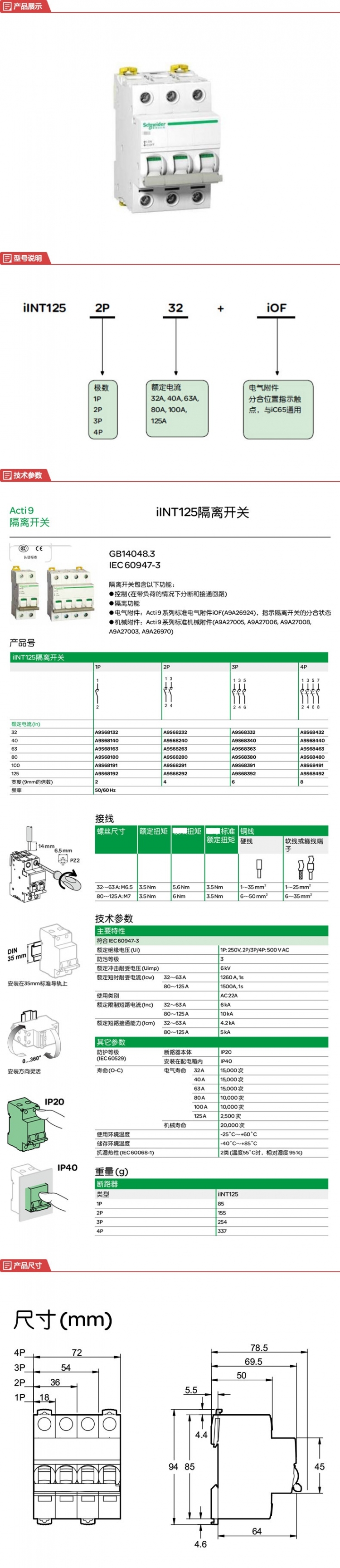 型号:iINT 40A 3P