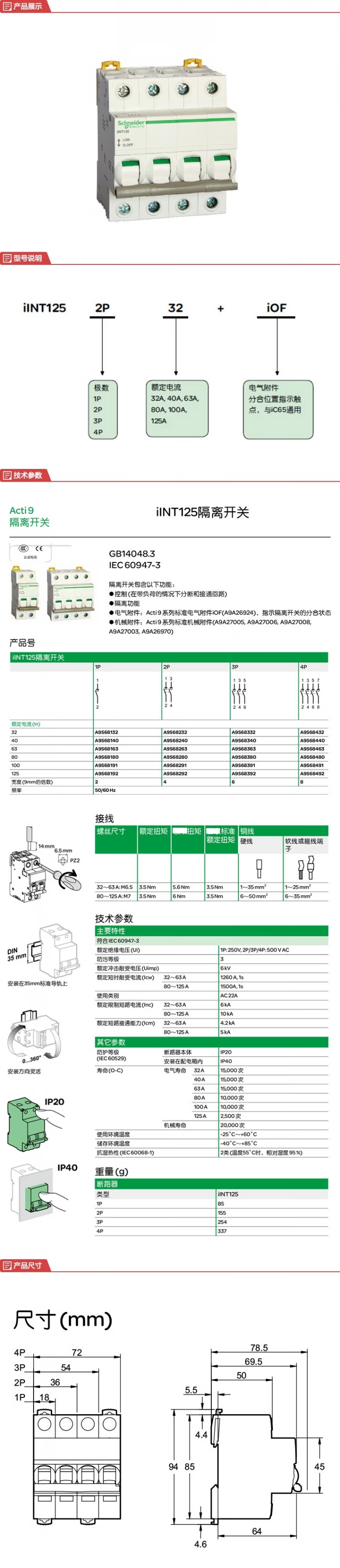 施耐德空气开关断路器EA9系列 EA9AN 空开 EA9AN3C63 三相电3P C63A
