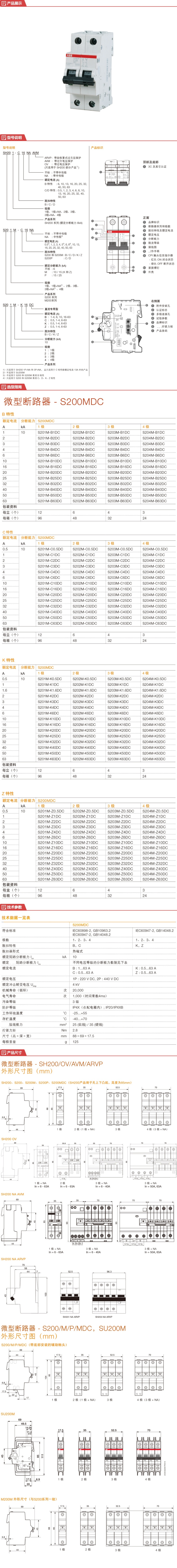 ABB S200M系列直流微型断路器;S202M-C63DC