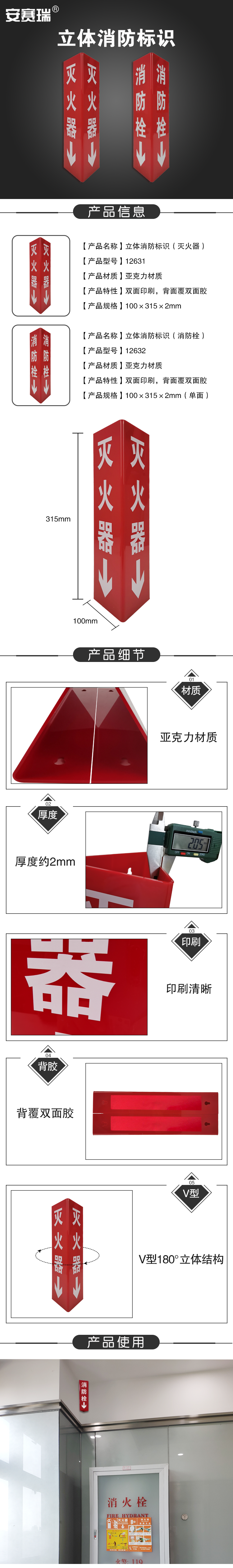 安赛瑞 立体消防标识(灭火器) 三角形警示双面胶标志牌 12631