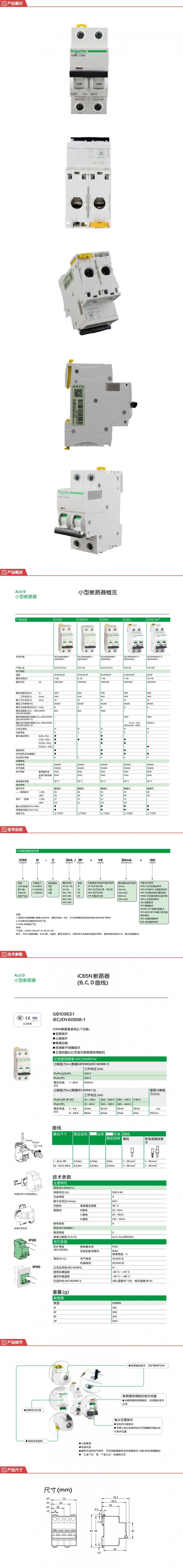 施耐德 小型断路器 空气开关 A9系列 iC65N 2P B2A A9F17202