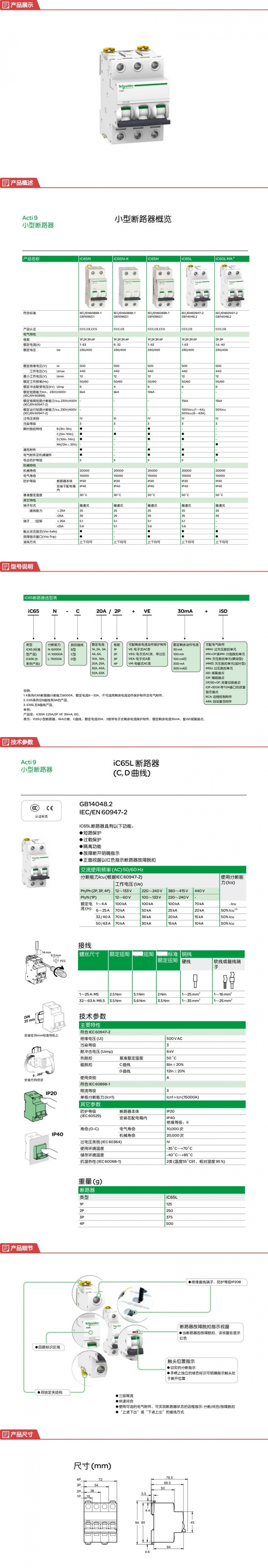 施耐德 小型断路器 空气开关 A9系列 iC65L 3P D40A A9F39340