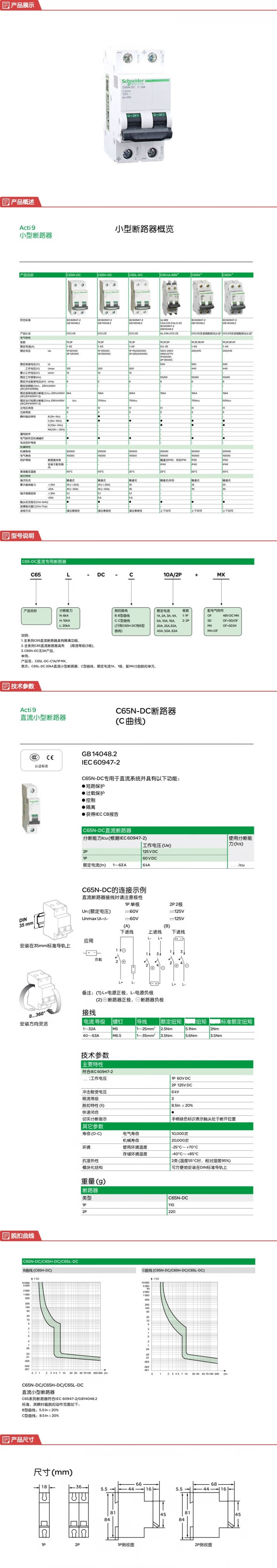 施耐德电气 直流小型断路器 空气开关 A9系列 C65N-DC-C16A 2P 6kA单位:个 货号A9N22425