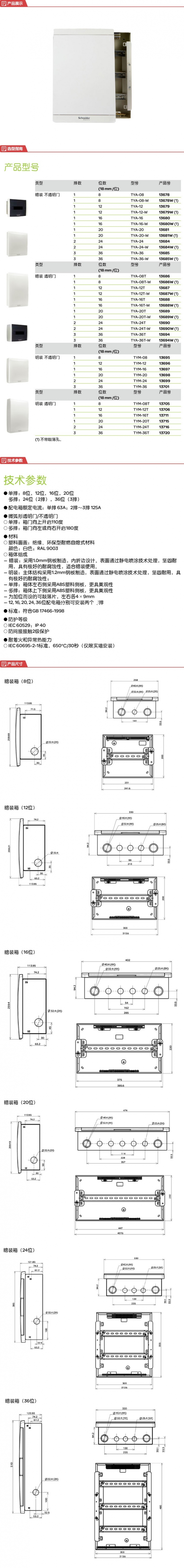 施耐德 配电箱 暗装不透明门3排36位模数配电箱;13685