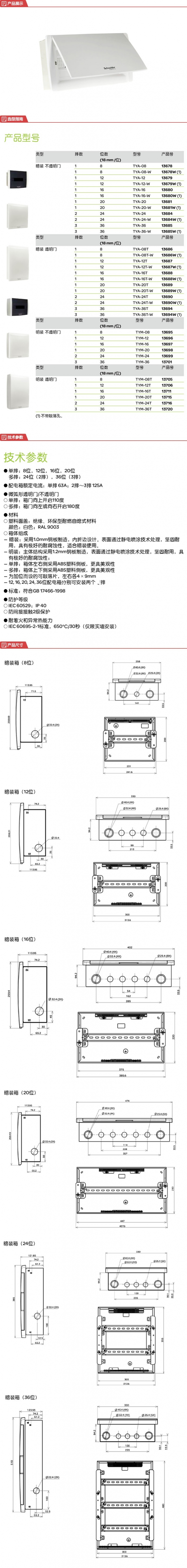 施耐德 配电箱 暗装不透明门单排20位模数配电箱;13681