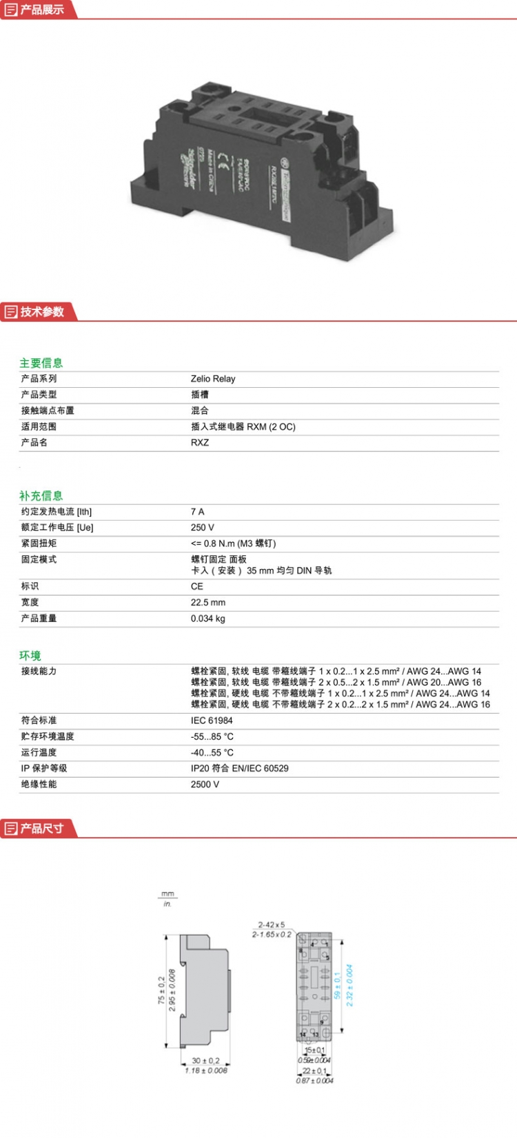 施耐德 中间继电器附件 2副触点经济型基座;RXZE1M2C