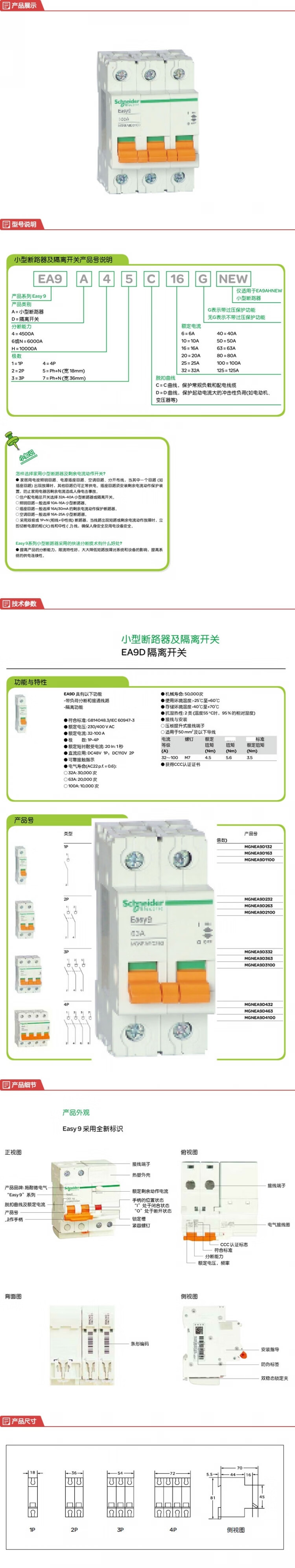 施耐德 隔离开关 EA9D 3P 32A;MGNEA9D332