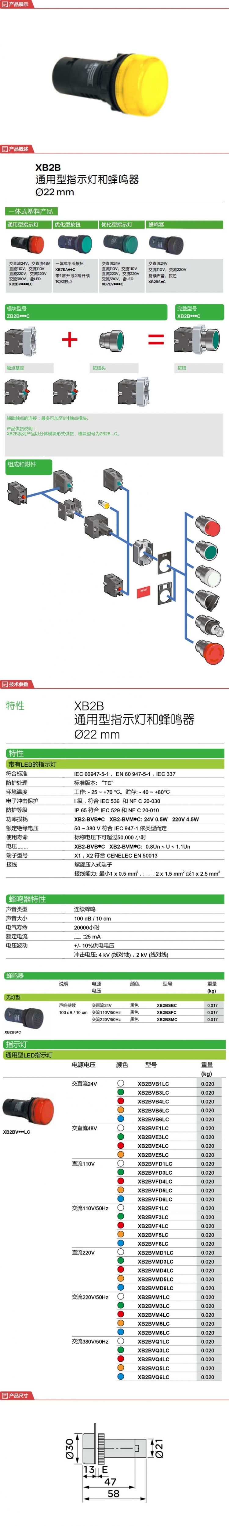 施耐德 指示灯\XB2BVB5LC-DC24V-圆形-黄-22单位:个