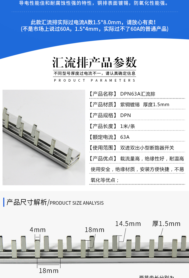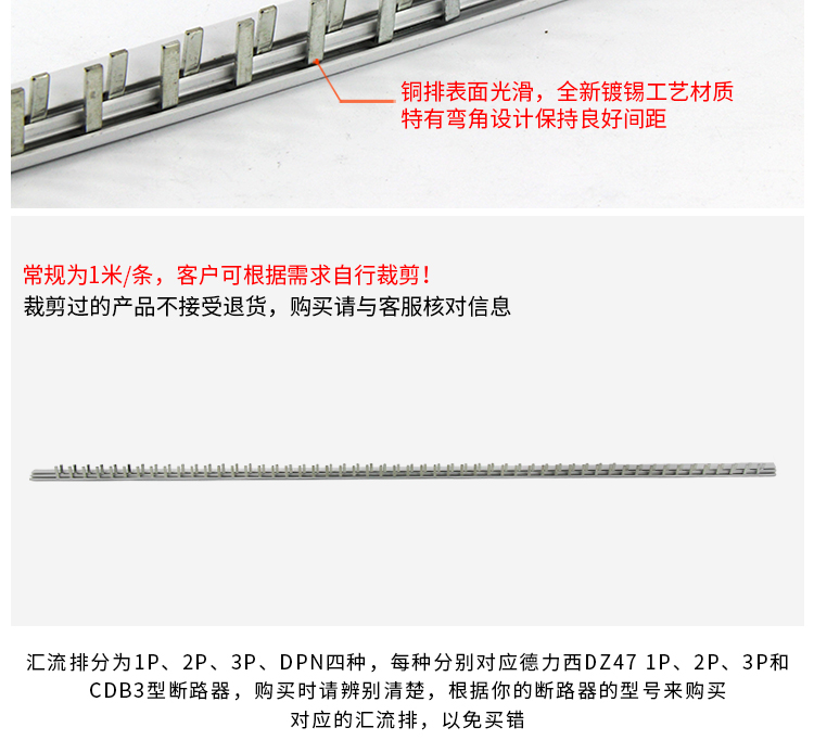 天旭DPN63A双进双出汇流排施耐德 西门子用汇流排 断路器连接铜排 1.5mm厚