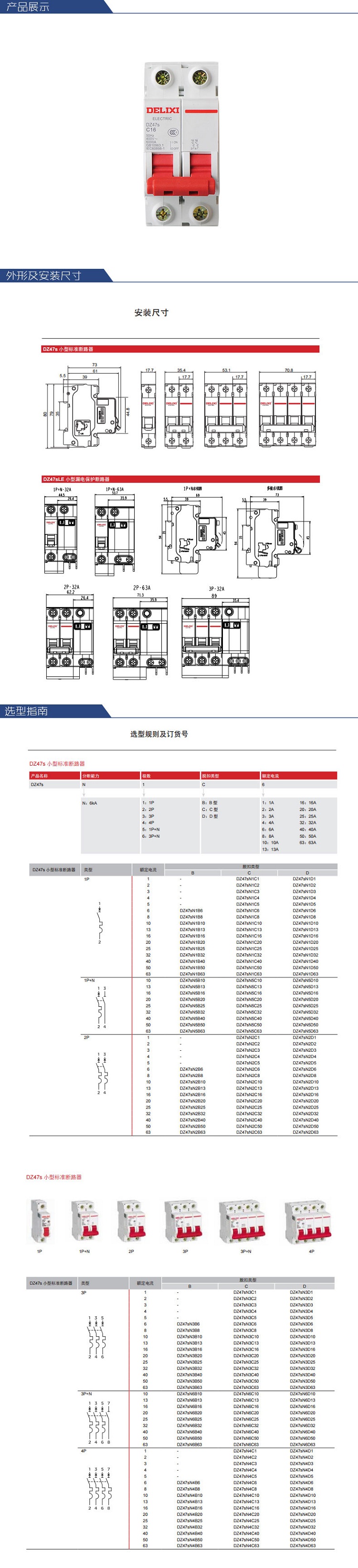 德力西电气 DZ47sLE 2P C 16A 微型断路器 DZ47SLEN2C16