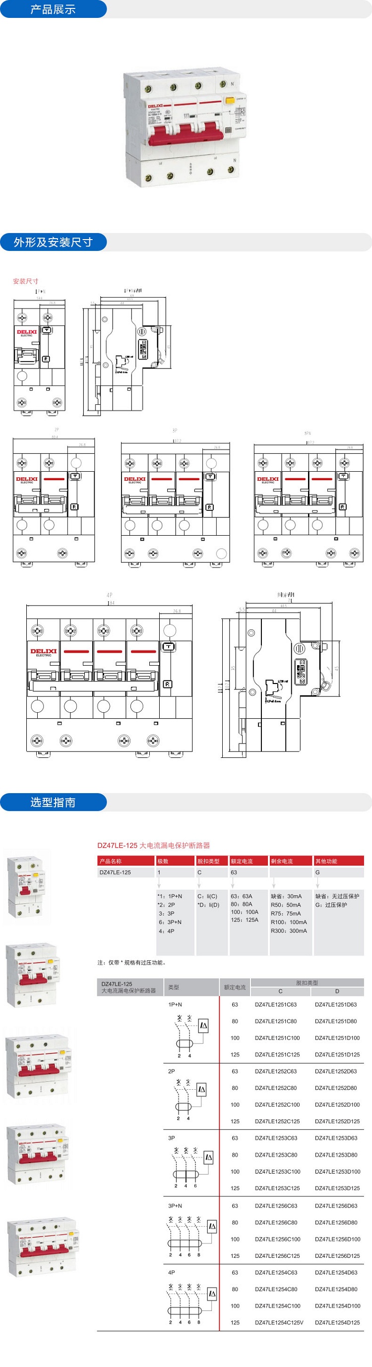 德力西 空气开关 漏电保护器断路器 DZ47LE-125 3P+N li(D) 100A ;DZ47LE1256D100