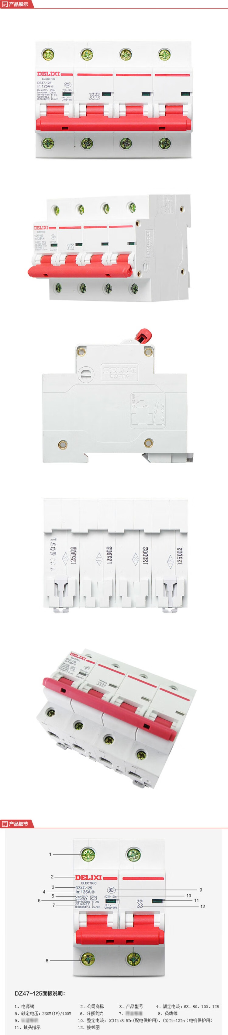 德力西电气 标准断路器;DZ47-125 4P li(D) 80A