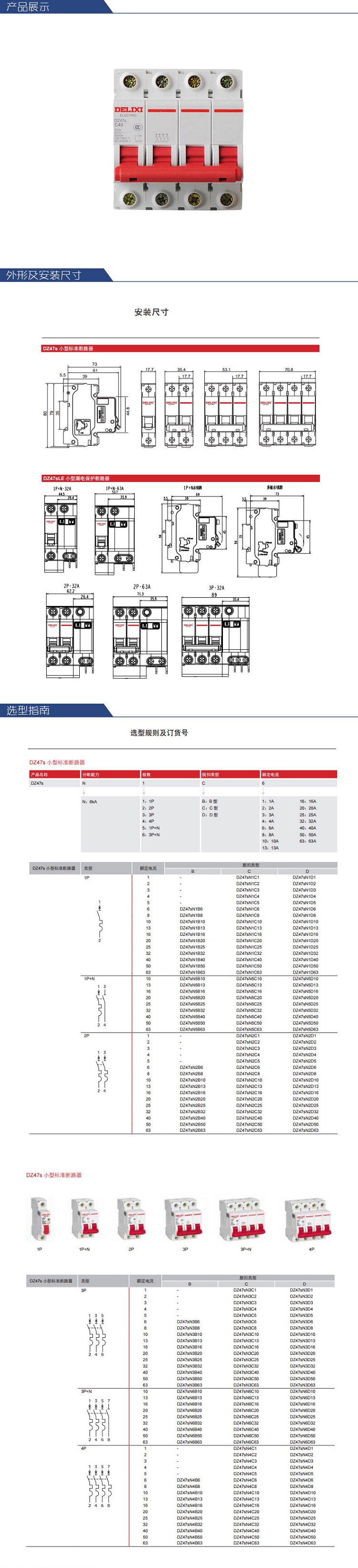 德力西电气 DZ47sLE 1P+N C 20A DZ47SLEN1C20