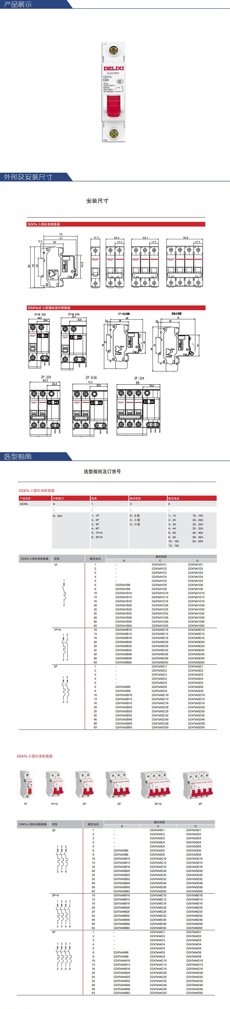 德力西 空气开关 小型断路器 DZ47s D型 1P 20A ;DZ47SN1D20
