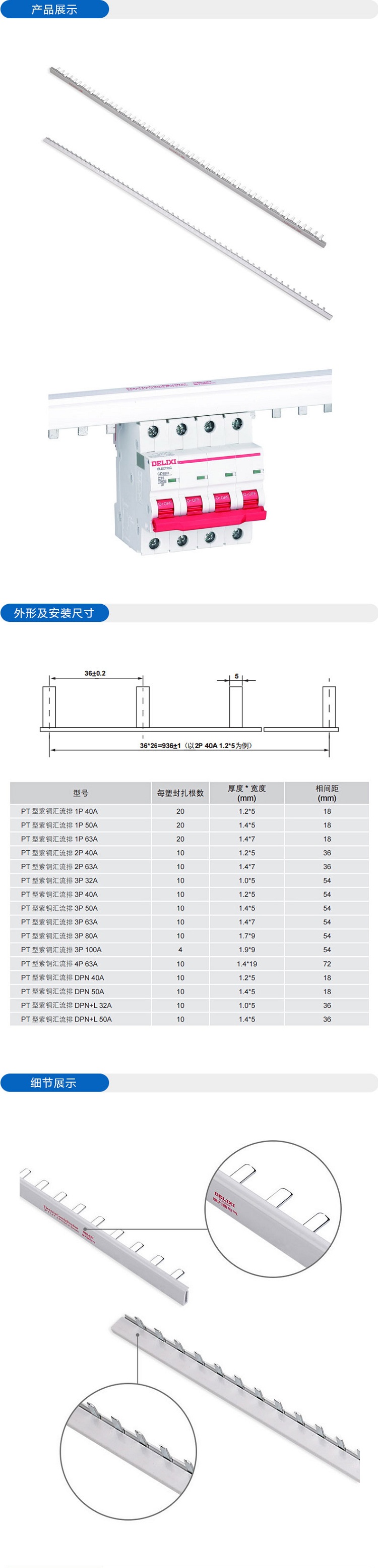 德力西电气 微型断路器附件;汇流排4P 63A 1.4*7 1米