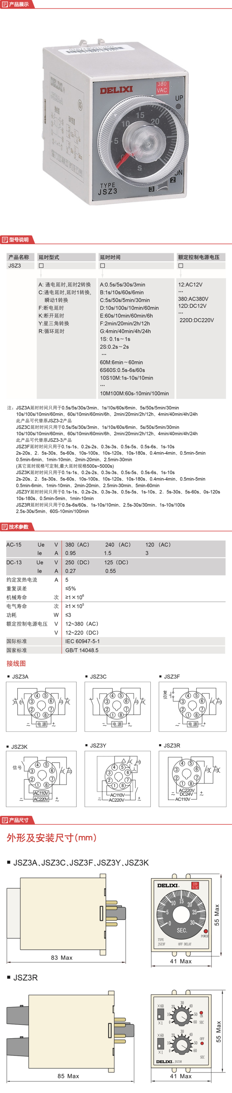 德力西电气 电子式时间继电器;JSZ3C-C 5S/50S/5M/30M AC220V