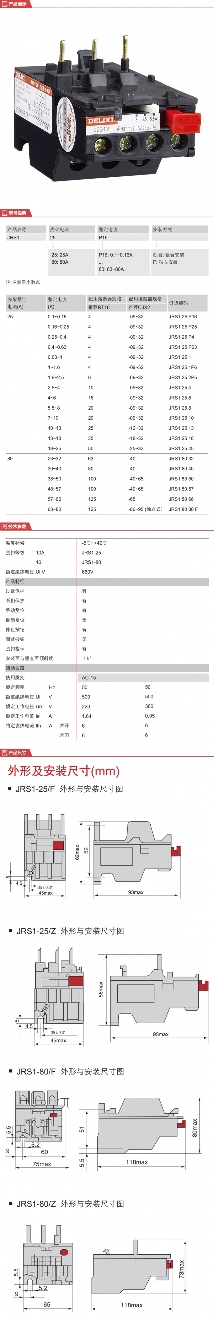德力西电气 热过载继电器;JRS1-25/Z 2.5-4A