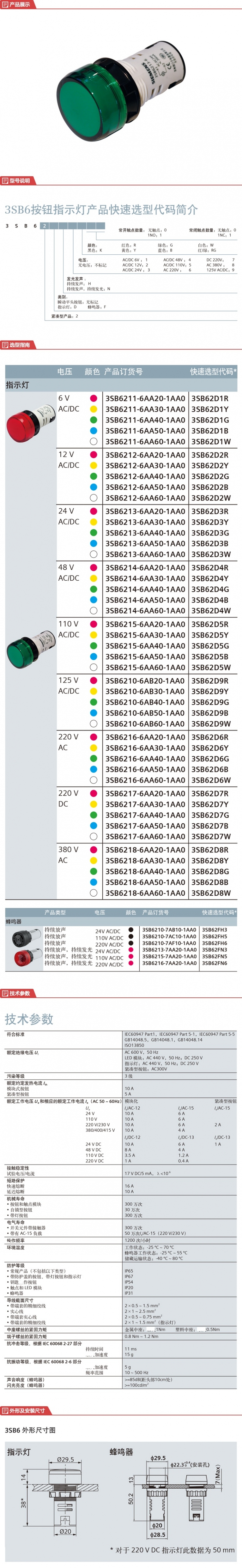 西门子 国产 3SB6系列指示灯 AC220V 货号3SB62166AA401AA0
