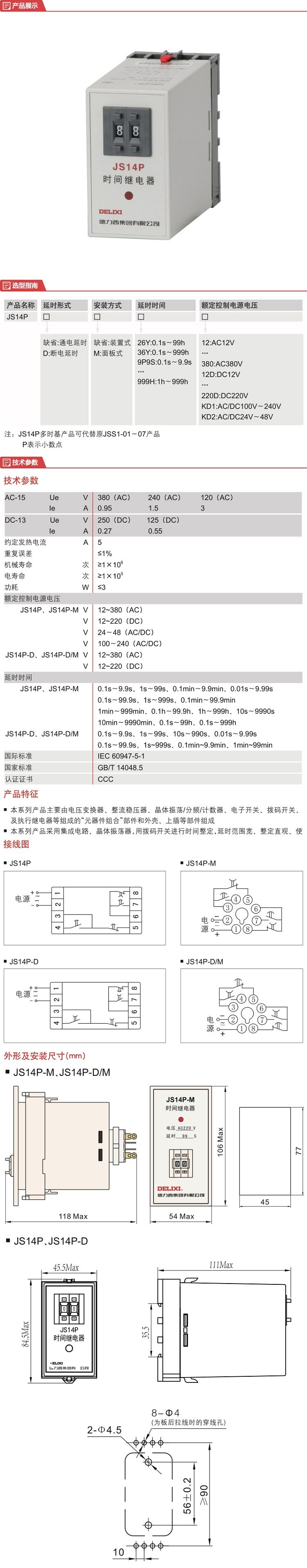 德力西电气 数字式时间继电器 JS14P-99S AC380V