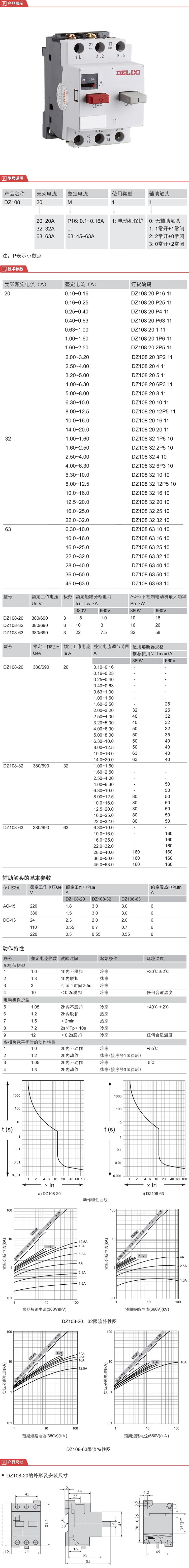 德力西 电动机断路器 DZ108-20 10A 二常开 ;DZ108201012