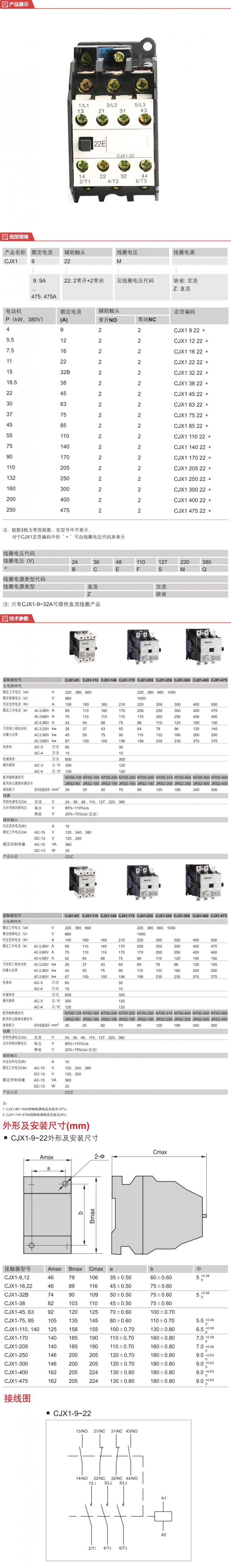德力西电气 通用型交流接触器;CJX1-22/22 50Hz 220V