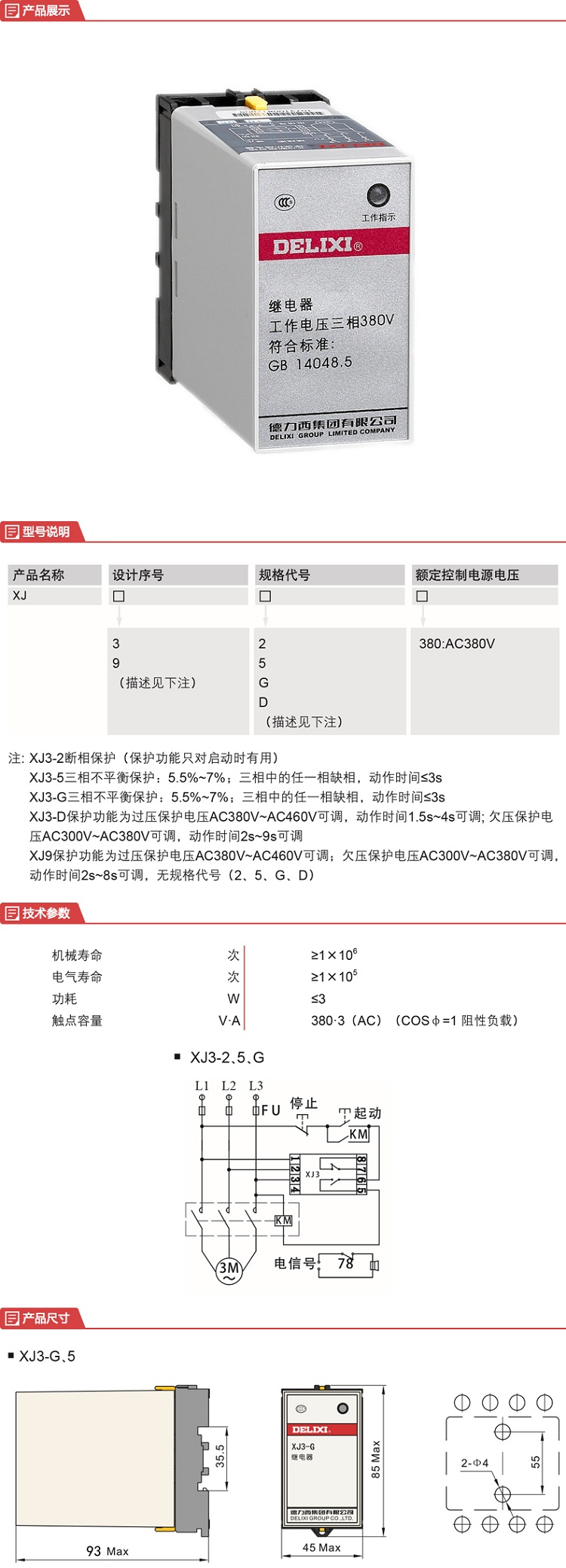 德力西电气 断相与相序保护继电器;XJ3-5 AC380V